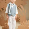 Ένα σύνολο που φέρνει νέα πνοή στη διαχρονική κομψότητα με απαλούς χρωματικούς συνδυασμούς και υπέροχο design.Το δίπιετο παντελόνι με την έξτρα λοξή ζώνη σε γκρι-σιελ απόχρωση από Tencel-viscose ύφασμα και το σταυρωτό γιλέκο με τον γιακά κιμονό σε μπεζ βαμβακερό ύφασμα δημιουργούν ένα εξαιρετικό σύνολο. Το λευκό βαμβακερό πουκάμισο και το φουλάρι με γεωμετρικά σχέδια σε σιελ αποχρώσεις με exclusive τύπωμα Baby Bloom ολοκληρώνουν μοναδικά το look. Για την τελική πινελιά, επιλέξτε ανάμεσα σε ψάθινο καπέλο ή υφασμάτινη τραγιάσκα, σύμφωνα με το προσωπικό σας στυλ.