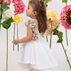 Η Ilektra είναι ένα εκρού ασύμμετρο φόρεμα βάπτισης σε πούδρα αποχρώσεις. Τα tutu τούλια που βρίσκονται στην φούστα του , του δίνουν ένα ασύλληπτο αέρα και τα πολύχρωμα λουλούδια που το στολίζουν το κάνουν καταπληκτικό. Το σύνολο ολοκληρώνεται με στέκα για το κεφάλι.