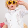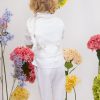 Συγκεκριμένα, αποτελείται από λευκή καπαρντίνα παντελόνι με πιέτες και λάστιχο στην μέση, λευκό πουκάμισο και λευκό ψάθα στραβό γιλέκο το οποίο είναι διακοσμημένο με elegant κουμπιά. Αξεσουάρ είναι το μοναδικό λευκό φουλάρι με μπεζ κέντημα, το μπεζ κορδόνι για ζώνη και το λευκό καβούρι.