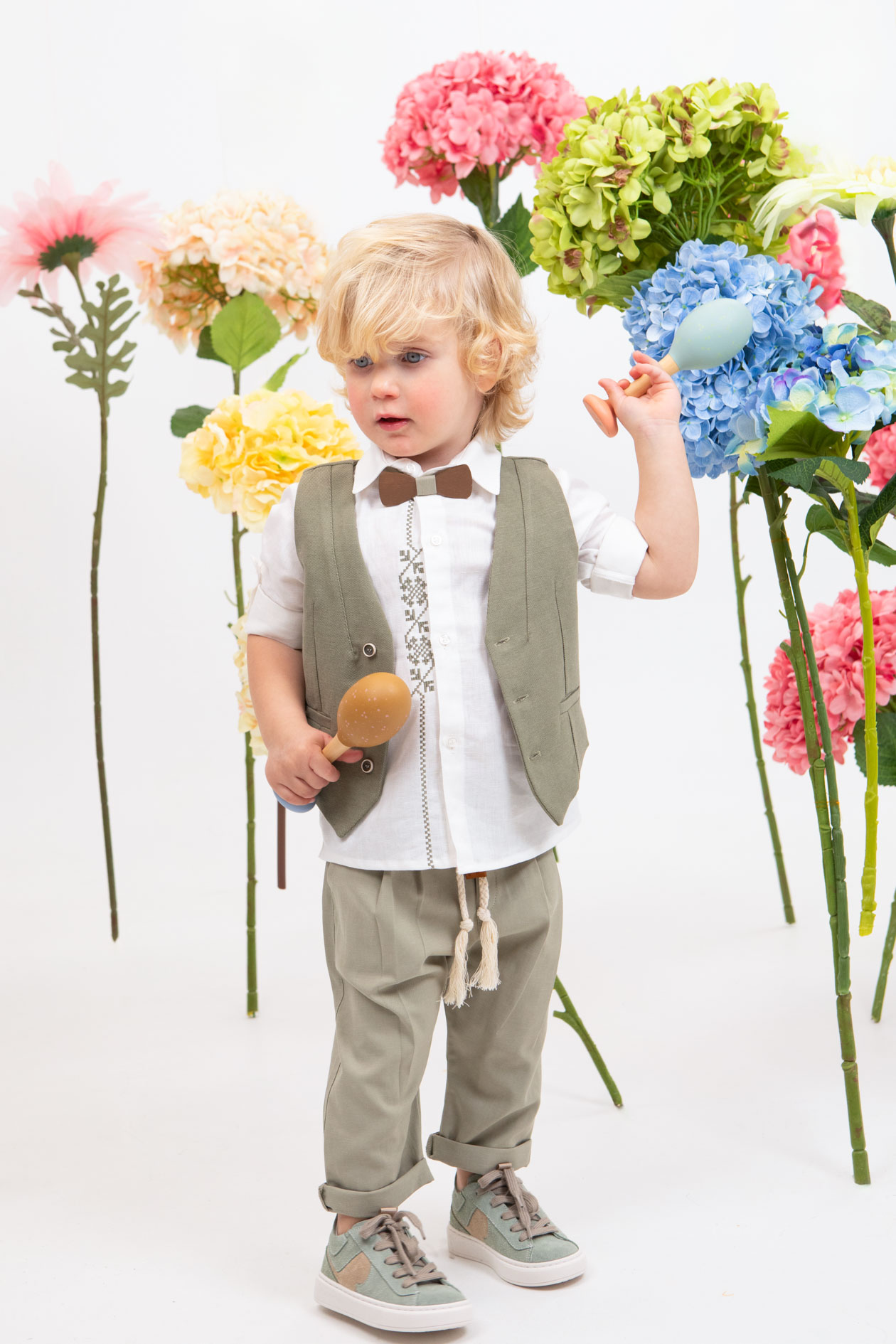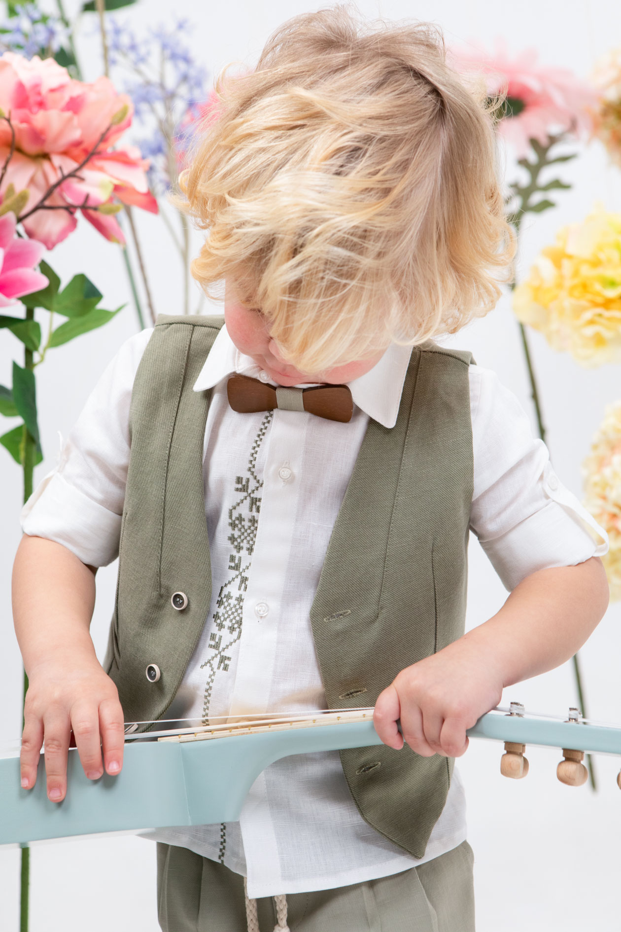 Ο Elias είναι ο απόλυτος συνδυασμός βάπτισης σε λαδί απόχρωση καθώς συνδυάζει την κομψότητα με την απλότητα. Αποτελείται από ανοιχτό λαδί παντελόνι με πιέτες , λευκό λινό πουκάμισο με φοβερό λαδί κέντημα και πιο σκούρο λαδί γιλέκο το οποίο είναι διακοσμημένο με chic κουμπιά που το ολοκληρώνουν αρμονικά. Αξεσουάρ είναι το ξύλινο παπιγιόν, το εκρού-μπεζ κορδόνι για ζώνη και το λευκό καβούρι του.