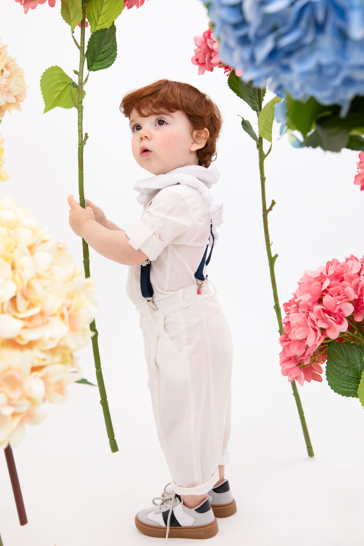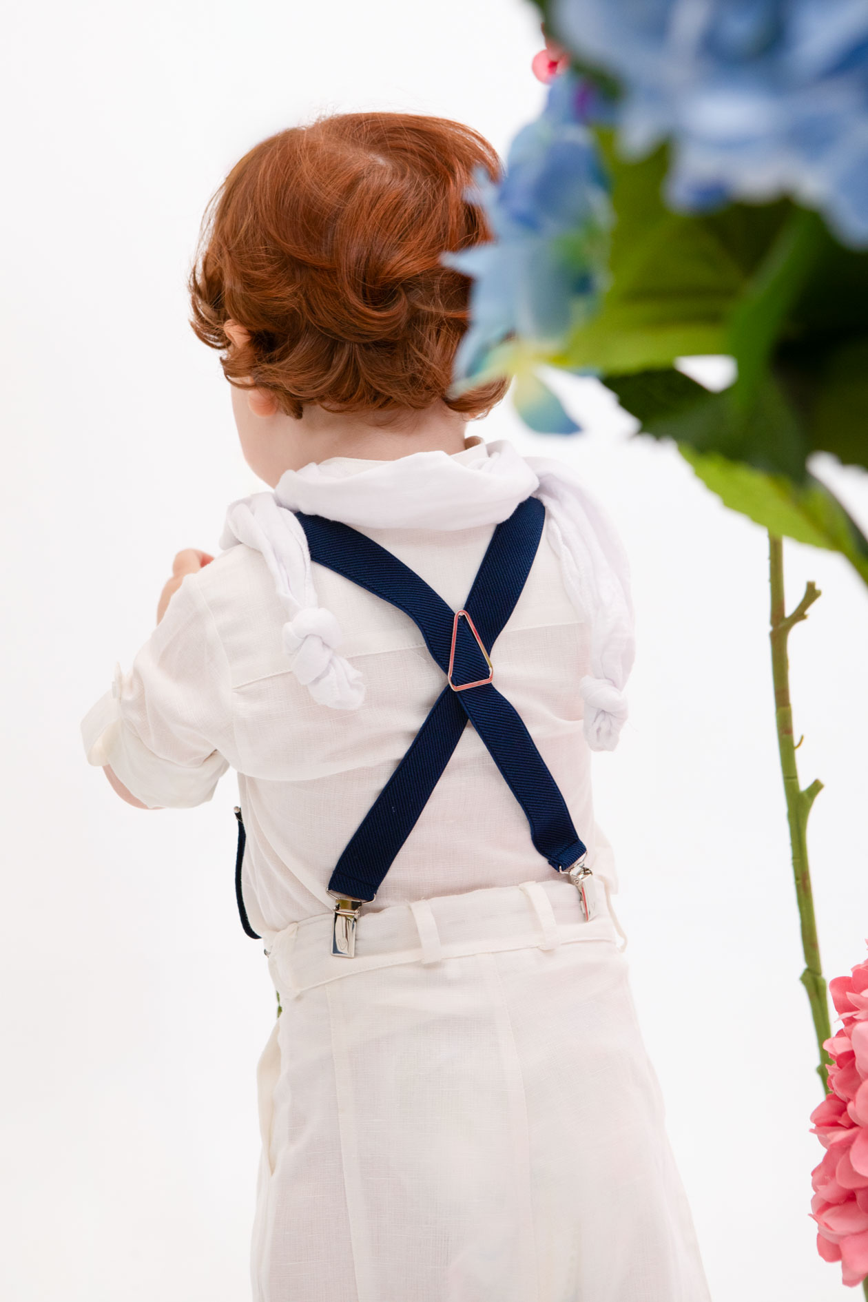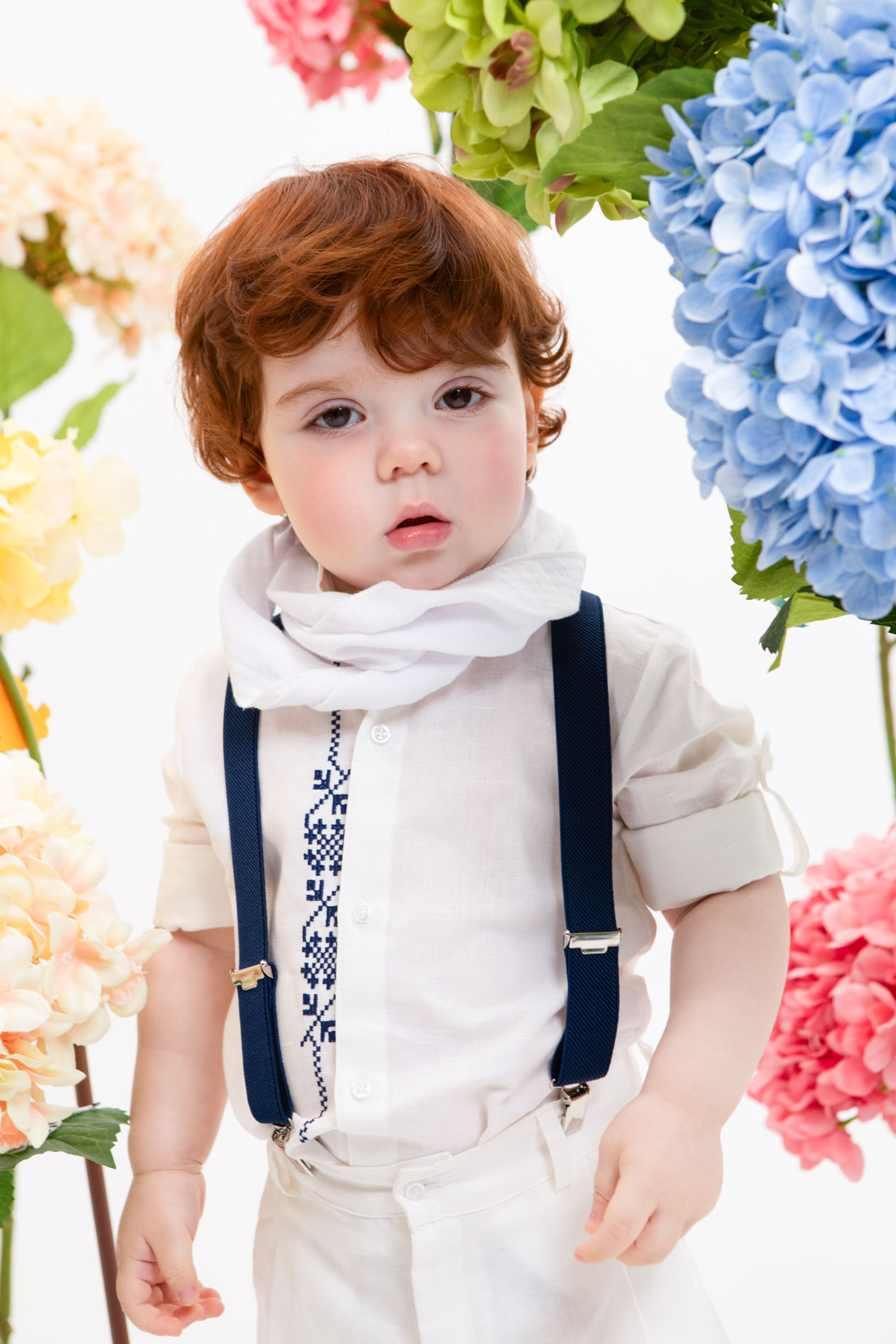 Ο Juan είναι ένα πολύ στιλάτο βαπτιστικό κοστούμι που συνδυάζει το λευκό με το μπλε άψογα. Αποτελείται από λευκό λινό παντελόνι , λευκό λινό πουκάμισο με μάο γιακά και μπλε κέντημα και ριγέ μπλε σακάκι εξαιρετικής ποιότητας.