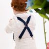 Αξεσουάρ είναι οι μπλε τιράντες , το λευκό καβούρι και το λευκό φουλάρι.