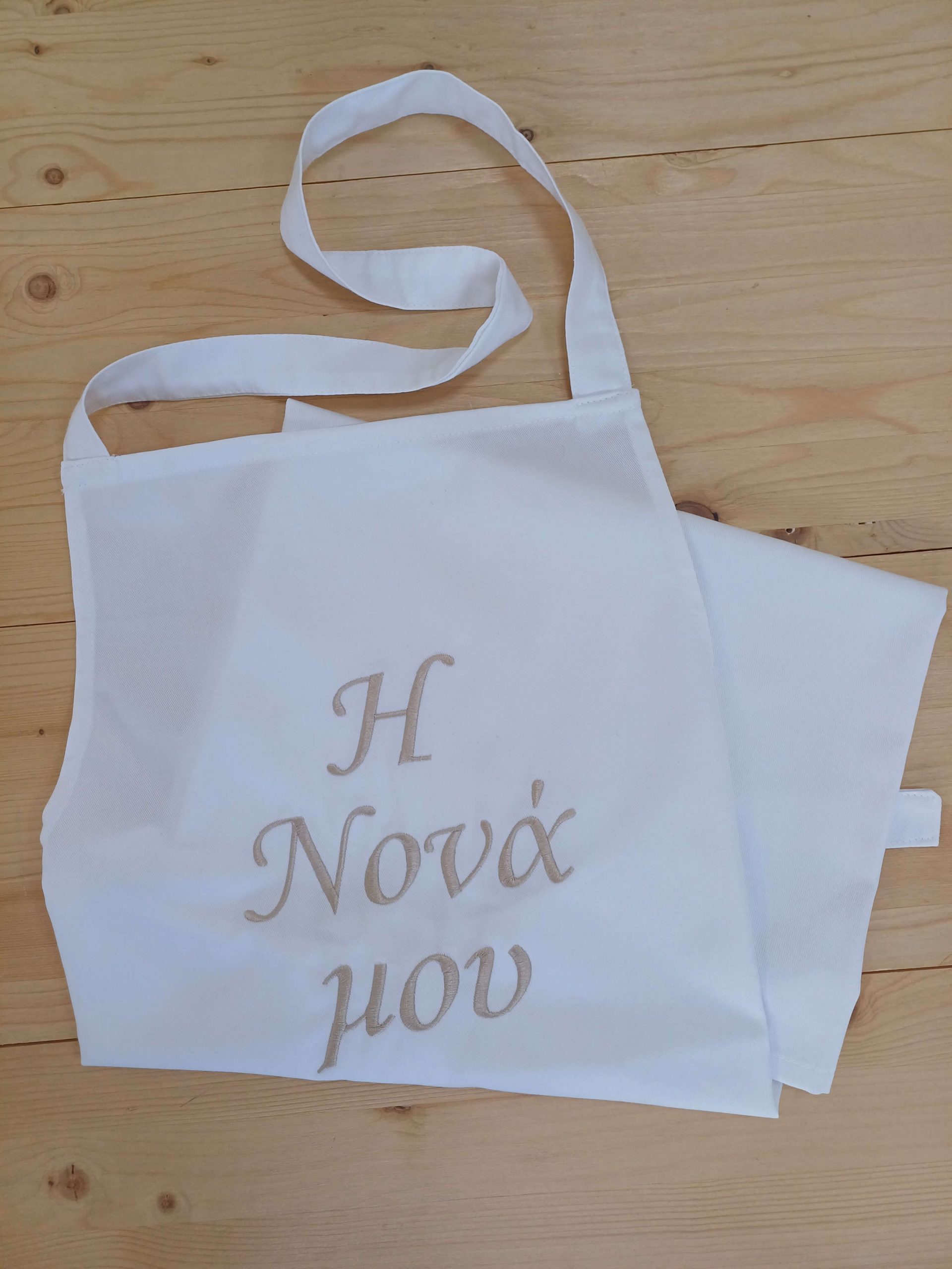 Βαμβακερή ποδιά της νονάς για το μυστήριο της βάπτισης.