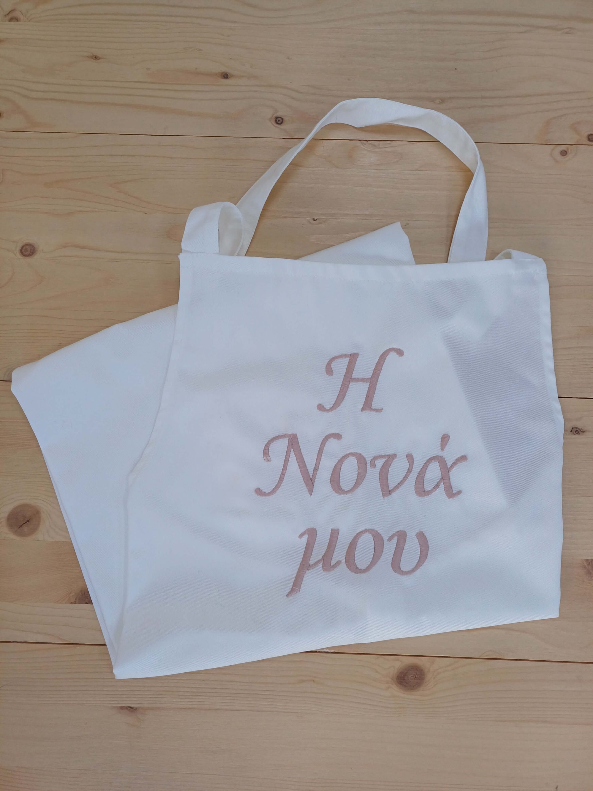 Βαμβακερή ποδιά της νονάς για το μυστήριο της βάπτισης.