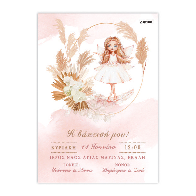 Προσκλητήριο Βάπτισης με θέμα Νεράιδα