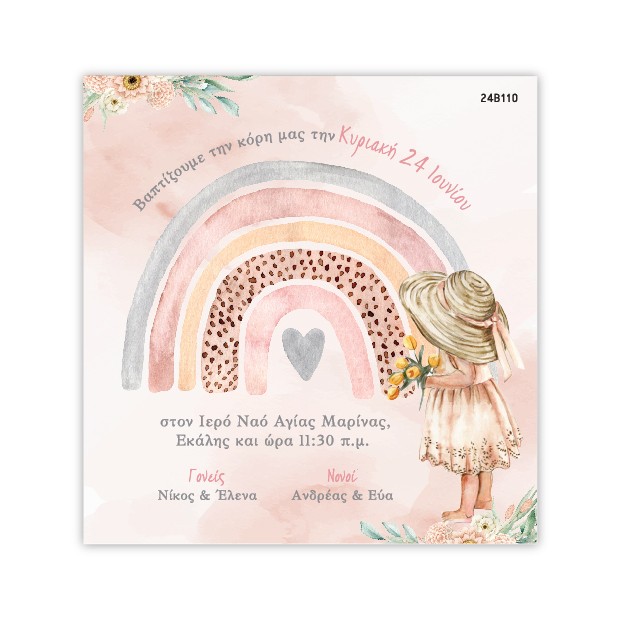 Προσκλητήριο Βάπτισης με θέμα Ουράνιο Τόξο