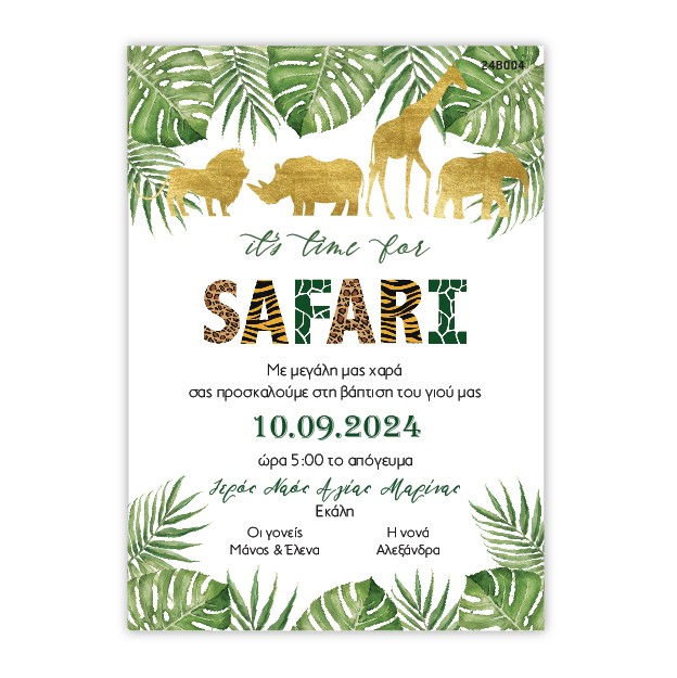Προσκλητήριο Βάπτισης με θέμα Safari