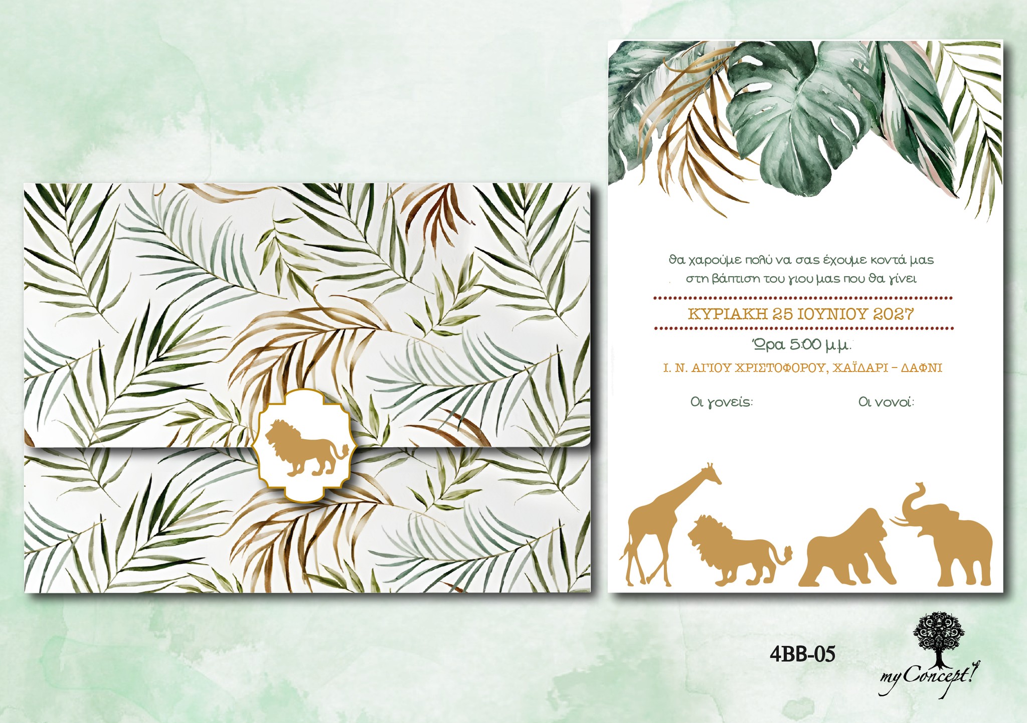 Προσκλητήριο Βάπτισης με θέμα Ζώα της Ζούγκλας